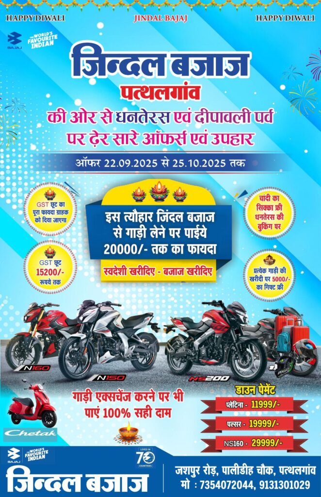पत्थलगांव में जिंदल बजाज का धमाका! दीपावली पर ऑफ़र्स की बरसात, ग्राहक बोले – ऐसा मौका फिर कहाँ!