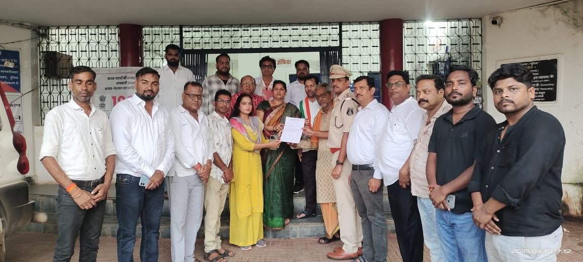 सारंगढ़ बिलाईगढ़ न्यूज़/ सारंगढ़ बिलाईगढ़ जिला कांग्रेस अध्यक्ष ताराचंद देवांगन जी के मार्गदर्शन में प्रदेश कांग्रेस के निर्देश में सारंगढ़ कांग्रेस संगठन ने सिटी कोतवाली पहुंचकर भाजपा के प्रवक्ता पिंटू महादेव के नाम पर fir दर्ज करने का ज्ञापन सोपा। गौरतलब हो की विगत दिनों न्यूज़ 18 न्यूज़ चैनल केरल में प्रसारित एक टेलीविजन बहस के दौरान भाजपा के प्रवक्ता श्री पिंटू महादेव द्वारा लोकसभा में विपक्ष के नेता माननीय श्री राहुल गांधी जी के खिलाफ जान से मारने की धमकी के विरोध में शिकायत दर्ज करने की मांग की। थाना प्रभारी कामिल हक ने कांग्रेसियों से ज्ञापन लिया। उक्त अवसर पर श्रीमती पदमा घनश्याम मनहर पूर्व विधायक, सरिता मल्होत्रा प्रदेश सचिव, प्रदेश प्रतिनिधि सूरज तिवारी, गणपत जांगडे, जिला उपाध्यक्ष संजय दुबे, उमेश केसरवानी, जिला महामंत्री गोल्डी नायक, विष्णु चंद्रा, पवन अग्रवाल नगर अध्यक्ष, राधे जायसवाल, शुभम वाजपेई, अभिषेक शर्मा, राकेश पटेल, रमेश खूंटे, राजू यादव, विजय विक्की पटेल, जितेंद्र पूराइन, राजेंद्र बारे, राम सिंह ठाकुर, दीपक भारद्वाज आदि कार्यकर्ता बड़ी संख्या में शामिल रहे।