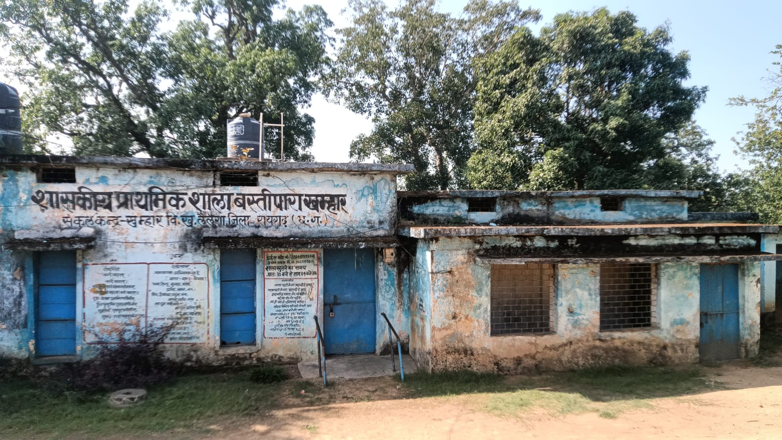 लैलूंगा विकासखंड के ग्राम पंचायत खम्हार बस्ती पारा की प्राथमिक शाला इन दिनों बदहाली की मार झेल रही है। महीनों से स्कूल का भवन इतना जर्जर हो चुका है कि कभी भी बड़ा हादसा हो सकता है। दीवारों में गहरी दरारें, छत से झड़ता पलस्तर और टपकता पानी बच्चों की ज़िंदगी के लिए खतरा बन चुका है। भयावह स्थिति यह है कि डर के साए में बच्चे अब अपने ही स्कूल भवन में नहीं, बल्कि दूसरे के परछी में बैठकर पढ़ने को मजबूर हैं।