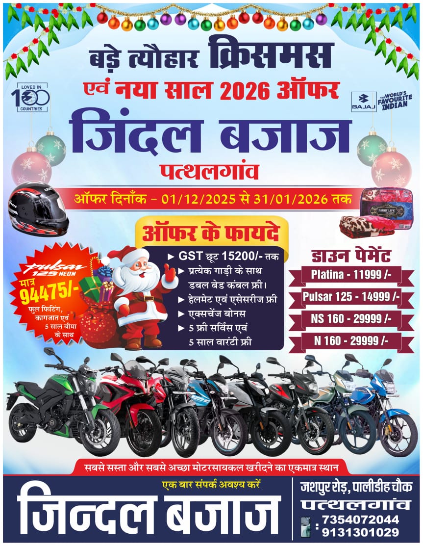दिसंबर में दुपहिया खरीदने का सुनहरा मौका – जिंदल बजाज पत्थलगांव दे रहा है धमाकेदार ऑफर्स
