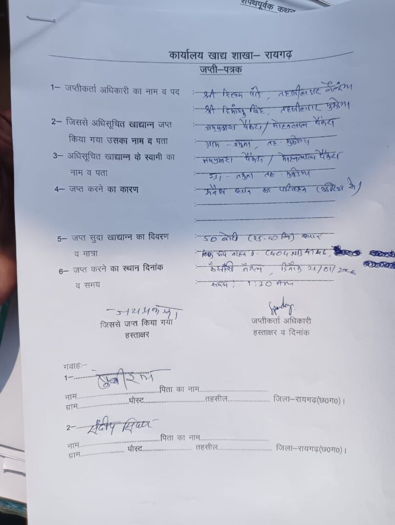 कार्रवाई के दौरान पिकअप वाहन को जब्त कर लिया गया है तथा धान की मात्रा की विधिवत जांच की जा रही है। प्रारंभिक जांच में धान के ओडिशा से लाए जाने की पुष्टि होने की आशंका जताई जा रही है। अधिकारियों ने स्पष्ट किया है कि अवैध धान परिवहन एवं भंडारण पर शून्य सहनशीलता की नीति के तहत सख्त कार्रवाई जारी रहेगी।